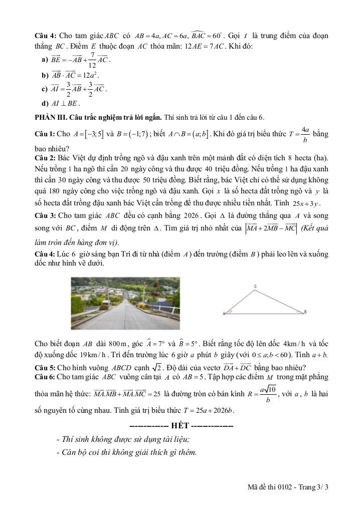 Trích dẫn Đề cuối học kỳ 1 Toán 10 năm 2025 – 2026 sở GD&ĐT Hưng Yên: