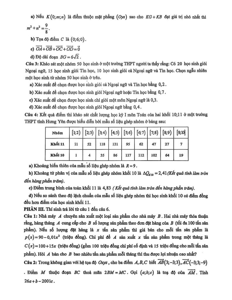 Giải Toán đề cuối học kỳ 1 toán 12 năm 2025 – 2026 sở gd&đt hưng yên với Đáp Án Mới Nhất