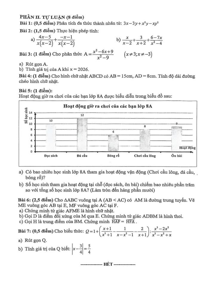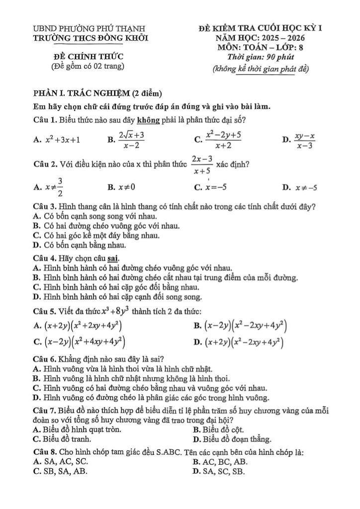 Trích dẫn Đề cuối học kỳ 1 Toán 8 năm 2025 – 2026 trường THCS Đồng Khởi – TP HCM:
