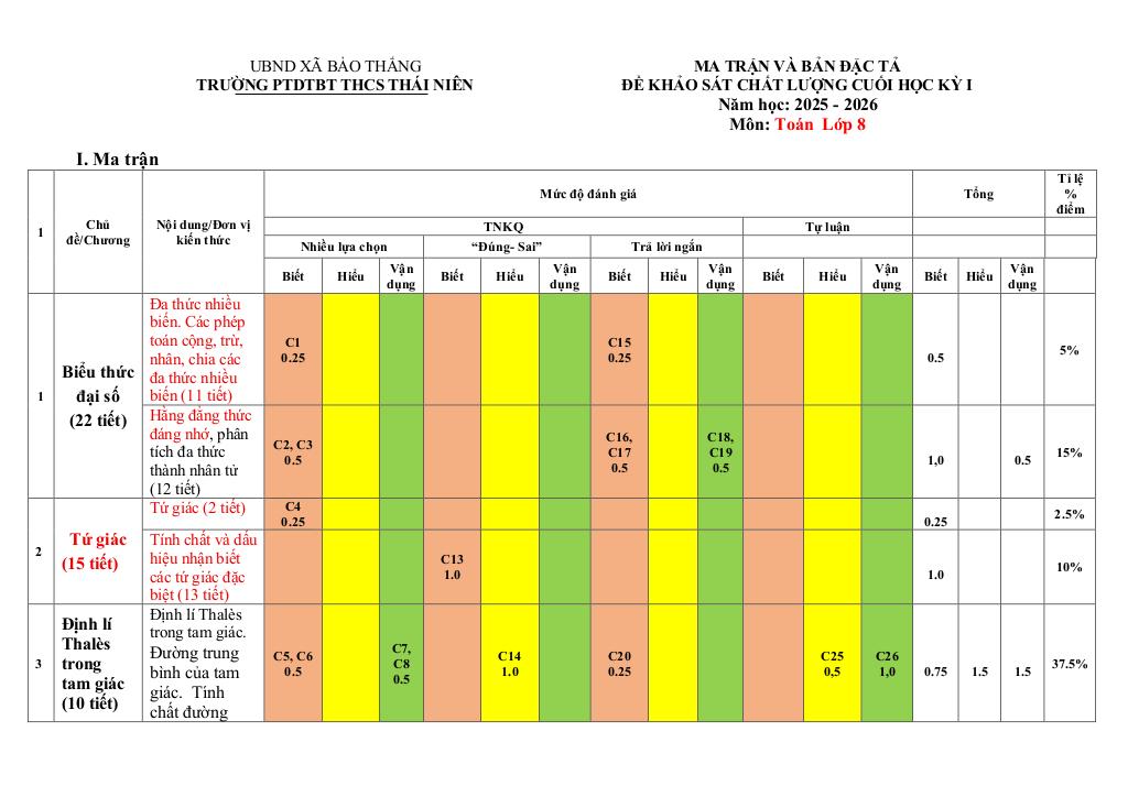 1. Tổng Quan về Chủ Đề đề cuối học kỳ 1 toán 8 năm 2025 – 2026 trường thcs thái niên – lào cai