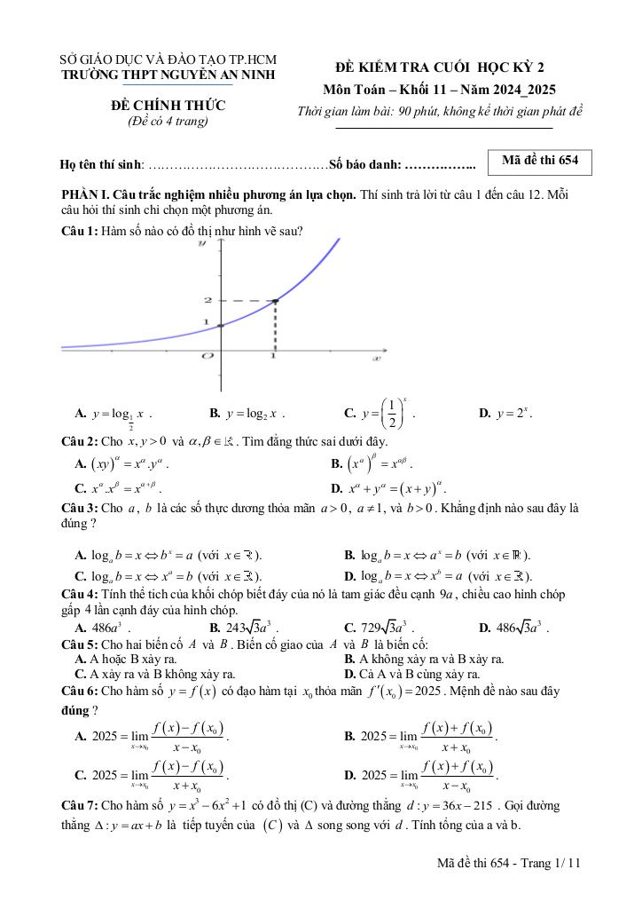 Giải Toán đề cuối học kỳ 2 toán 11 năm 2024 – 2025 trường thpt nguyễn an ninh – tp hcm với Đáp Án Mới Nhất