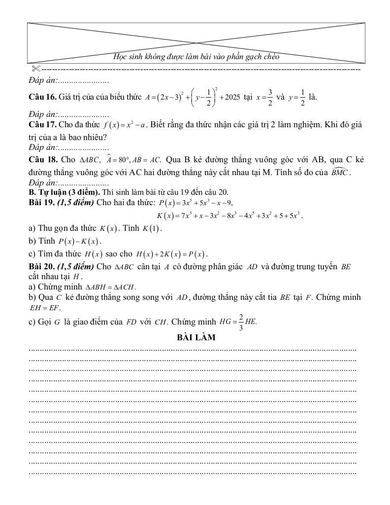 Toán học luôn là một môn học quan trọng, giúp học sinh phát triển tư duy logic và kỹ năng giải quyết vấn đề. Để hỗ trợ các bạn học sinh và giáo viên trong việc học tập và giảng dạy, bài viết này sẽ cung cấp lời giải chi tiết và đáp án chính xác cho chủ đề đề cuối học kỳ 2 toán 7 năm 2024 – 2025 phòng gd&đt hoài nhơn – bình định, giúp bạn hiểu sâu và tự tin hơn khi làm bài tập.