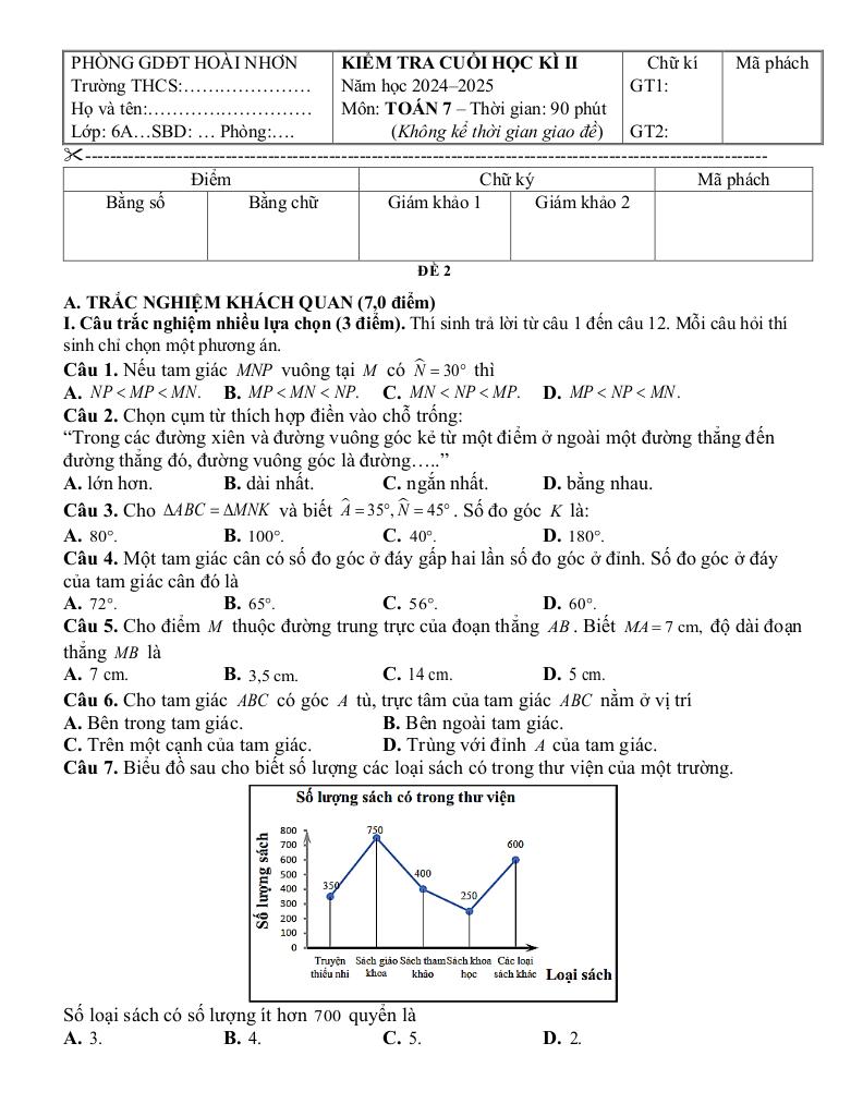 đề cuối học kỳ 2 toán 7 năm 2024 – 2025 phòng gd&đt hoài nhơn – bình định là một trong những phần kiến thức quan trọng trong chương trình toán học, thường xuất hiện trong các bài kiểm tra và kỳ thi lớn. Việc nắm vững phần này không chỉ giúp bạn đạt điểm cao mà còn tạo nền tảng vững chắc để học các nội dung nâng cao hơn.