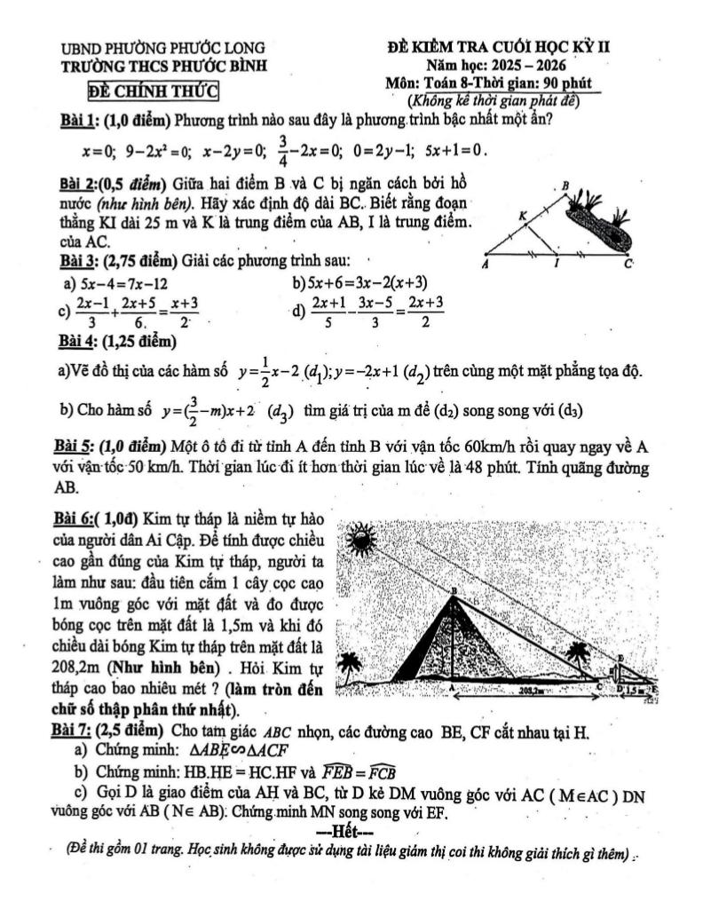 Trích dẫn Đề cuối học kỳ 2 Toán 8 năm 2025 – 2026 trường THCS Phước Bình – TP HCM: