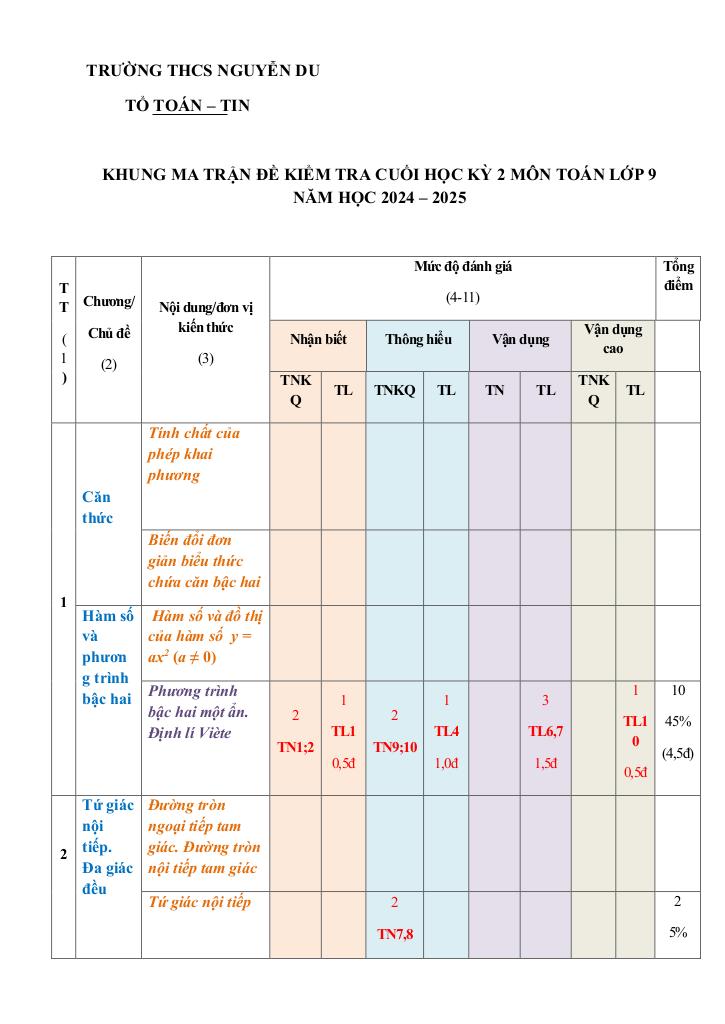 1. Tổng Quan về Chủ Đề đề cuối học kỳ 2 toán 9 năm 2024 – 2025 trường thcs nguyễn du – lâm đồng