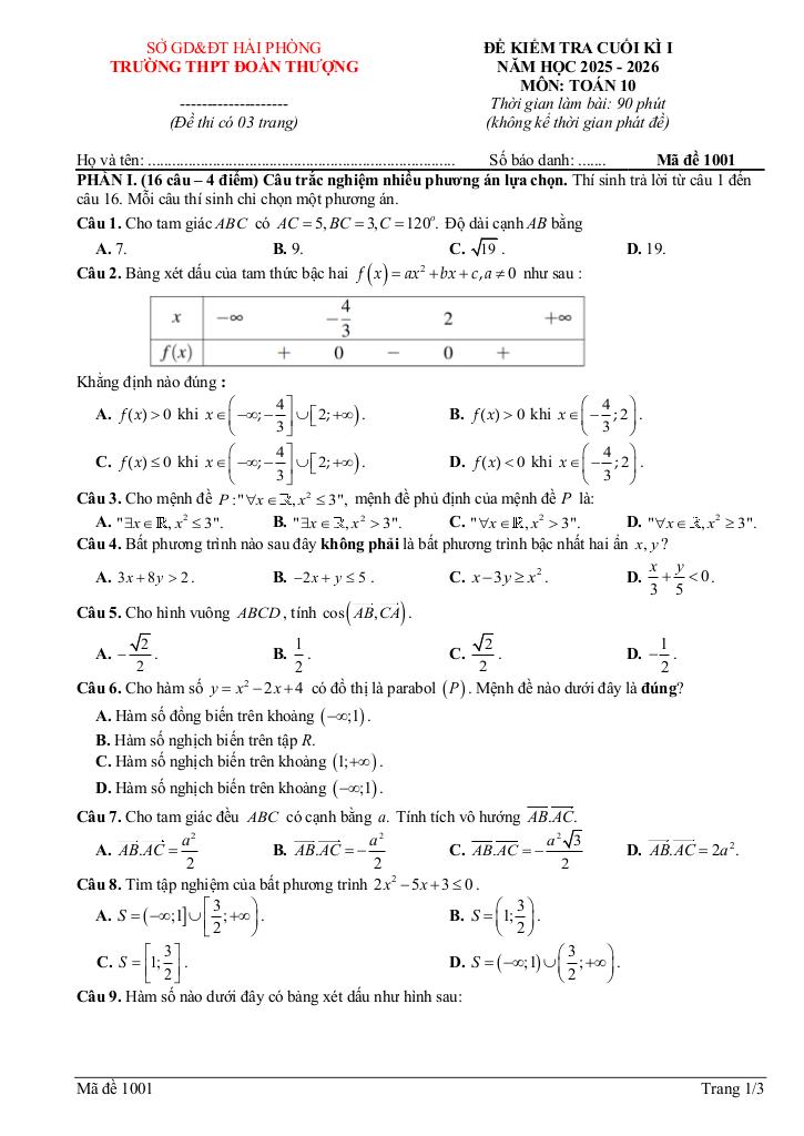 Toán học luôn là một môn học quan trọng, giúp học sinh phát triển tư duy logic và kỹ năng giải quyết vấn đề. Để hỗ trợ các bạn học sinh và giáo viên trong việc học tập và giảng dạy, bài viết này sẽ cung cấp lời giải chi tiết và đáp án chính xác cho chủ đề đề cuối kì 1 toán 10 năm 2025 – 2026 trường thpt đoàn thượng – hải phòng, giúp bạn hiểu sâu và tự tin hơn khi làm bài tập.
