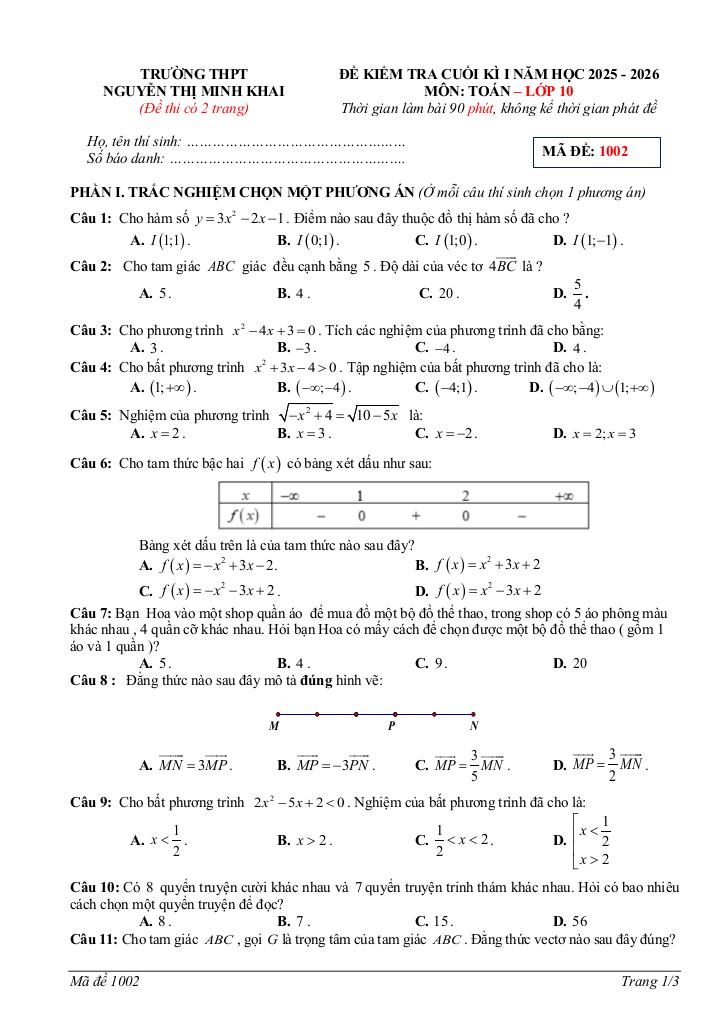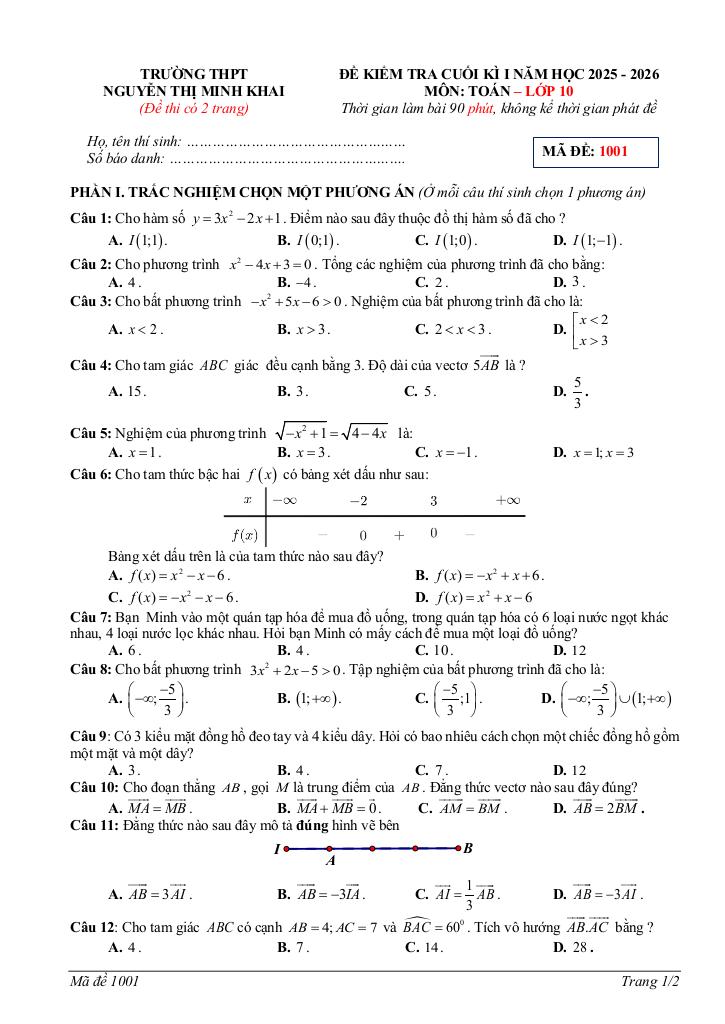 Toán học luôn là một môn học quan trọng, giúp học sinh phát triển tư duy logic và kỹ năng giải quyết vấn đề. Để hỗ trợ các bạn học sinh và giáo viên trong việc học tập và giảng dạy, bài viết này sẽ cung cấp lời giải chi tiết và đáp án chính xác cho chủ đề đề cuối kì 1 toán 10 năm 2025 – 2026 trường thpt nguyễn thị minh khai – hà tĩnh, giúp bạn hiểu sâu và tự tin hơn khi làm bài tập.