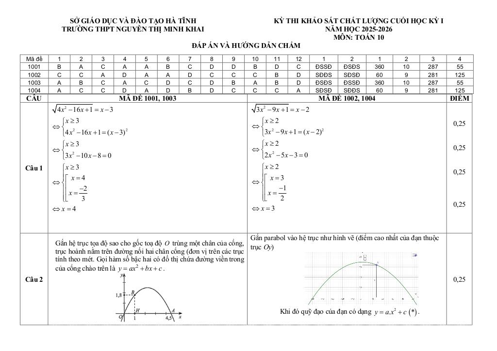 Giải Toán đề cuối kì 1 toán 10 năm 2025 – 2026 trường thpt nguyễn thị minh khai – hà tĩnh với Đáp Án Mới Nhất