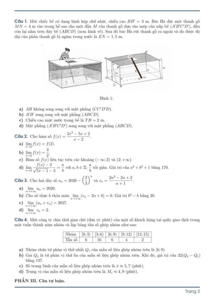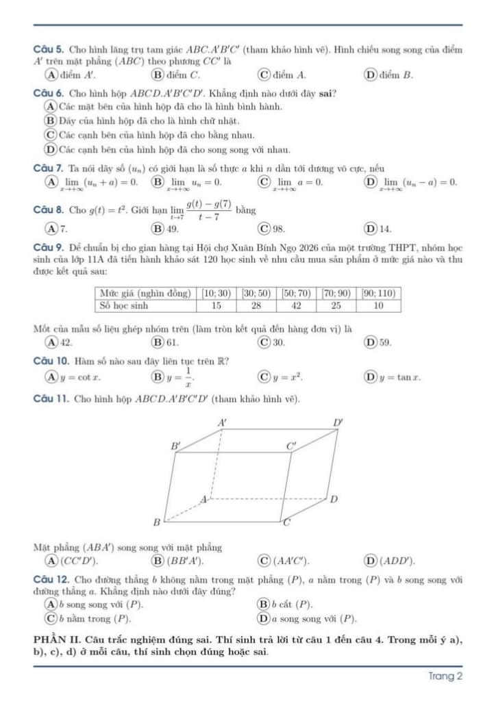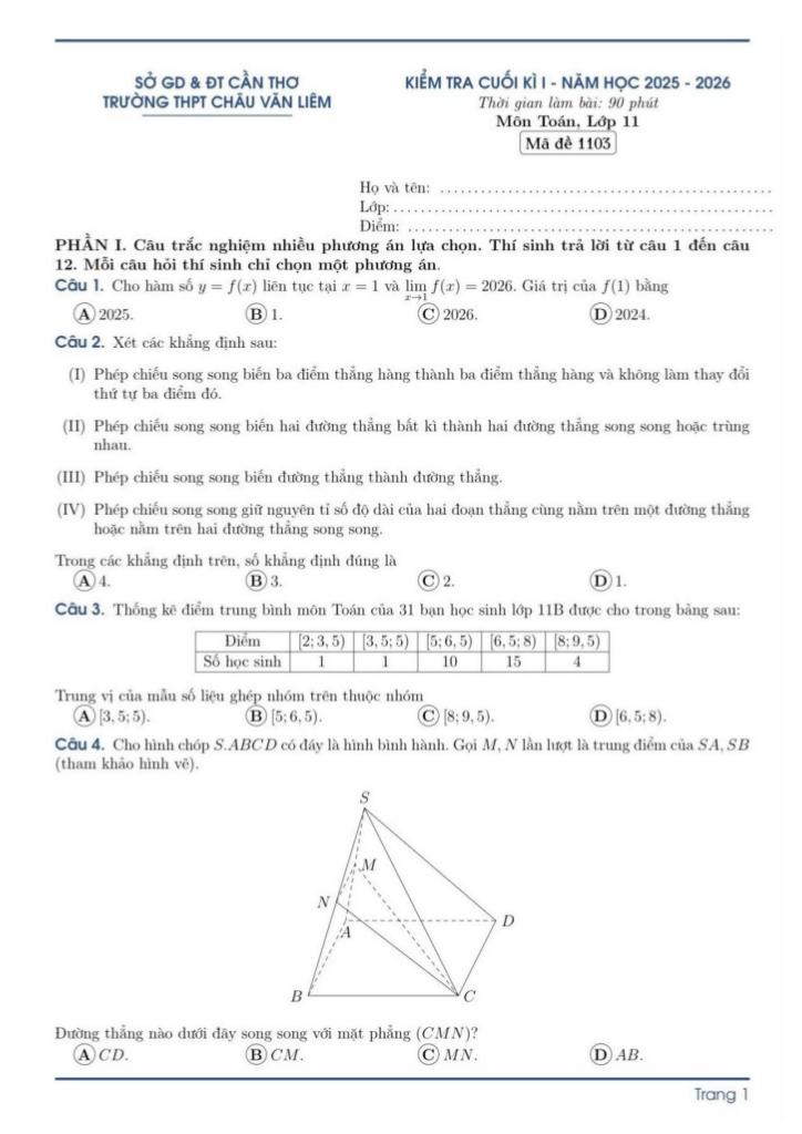 Toán học luôn là một môn học quan trọng, giúp học sinh phát triển tư duy logic và kỹ năng giải quyết vấn đề. Để hỗ trợ các bạn học sinh và giáo viên trong việc học tập và giảng dạy, bài viết này sẽ cung cấp lời giải chi tiết và đáp án chính xác cho chủ đề đề cuối kì 1 toán 11 năm 2025 – 2026 trường thpt châu văn liêm – cần thơ, giúp bạn hiểu sâu và tự tin hơn khi làm bài tập.