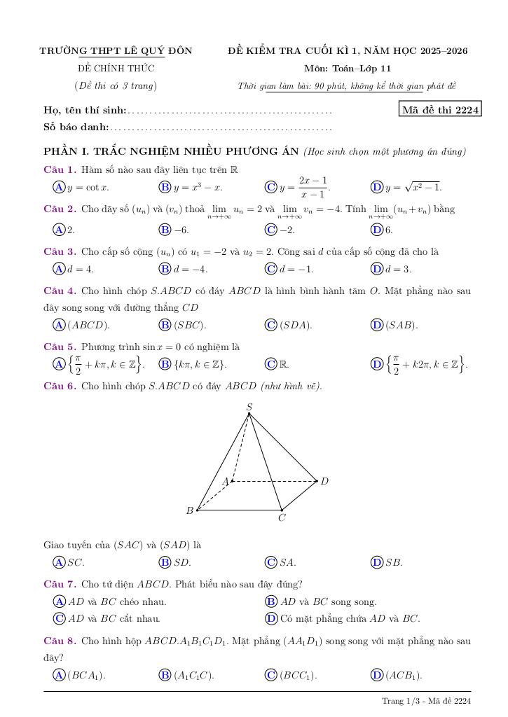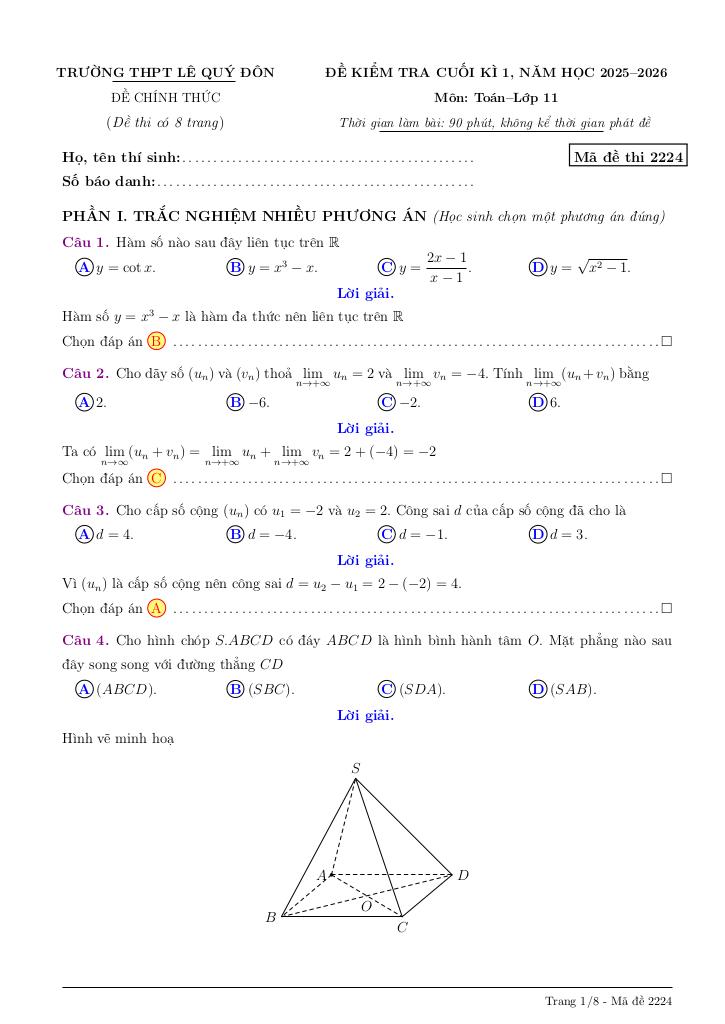 Toán học luôn là một môn học quan trọng, giúp học sinh phát triển tư duy logic và kỹ năng giải quyết vấn đề. Để hỗ trợ các bạn học sinh và giáo viên trong việc học tập và giảng dạy, bài viết này sẽ cung cấp lời giải chi tiết và đáp án chính xác cho chủ đề đề cuối kì 1 toán 11 năm 2025 – 2026 trường thpt lê quý đôn – quảng ngãi, giúp bạn hiểu sâu và tự tin hơn khi làm bài tập.