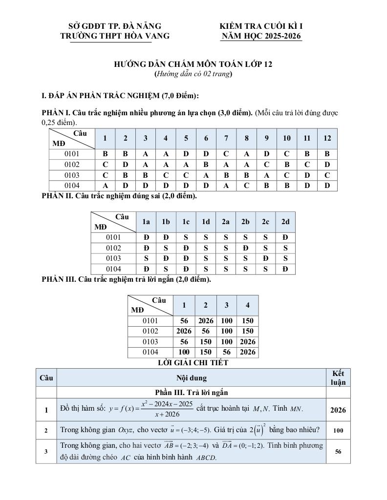 Toán học luôn là một môn học quan trọng, giúp học sinh phát triển tư duy logic và kỹ năng giải quyết vấn đề. Để hỗ trợ các bạn học sinh và giáo viên trong việc học tập và giảng dạy, bài viết này sẽ cung cấp lời giải chi tiết và đáp án chính xác cho chủ đề đề cuối kì 1 toán 12 năm 2025 – 2026 trường thpt hòa vang – đà nẵng, giúp bạn hiểu sâu và tự tin hơn khi làm bài tập.