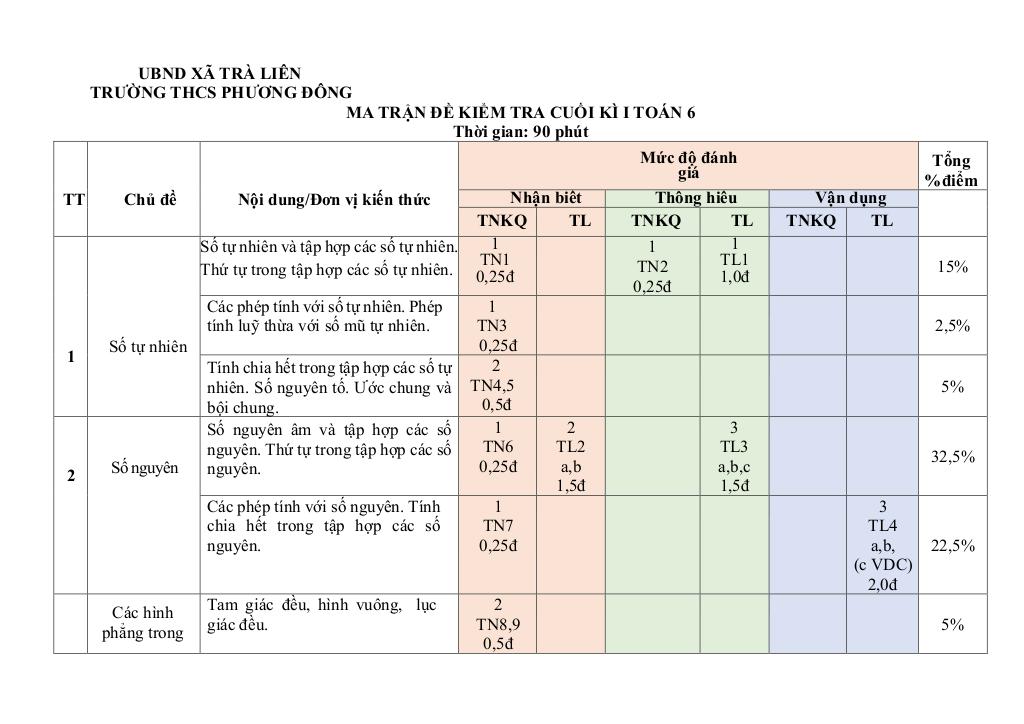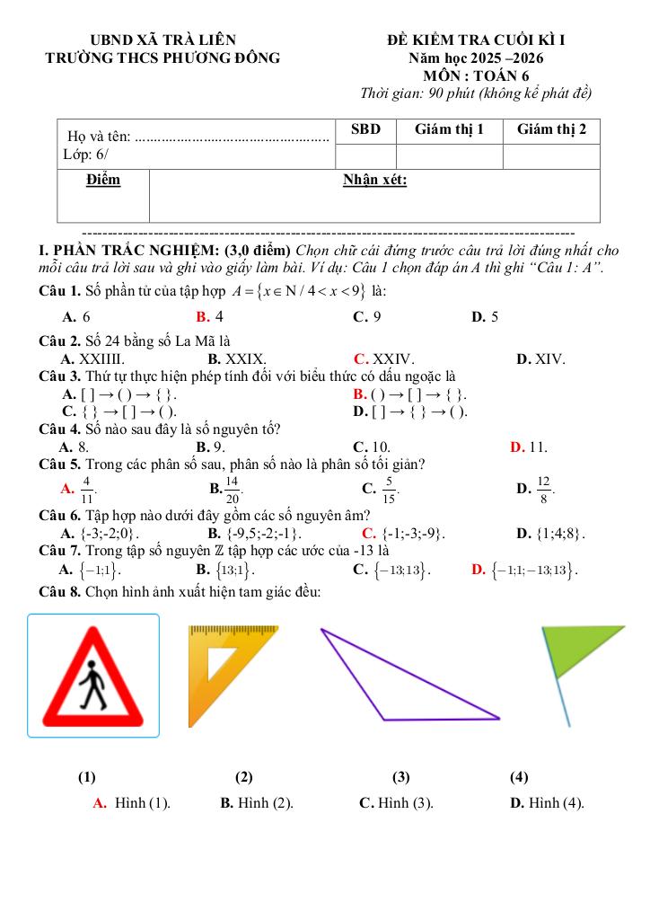 Trích dẫn Đề cuối kì 1 Toán 6 năm 2025 – 2026 trường THCS Phương Đông – Đà Nẵng: