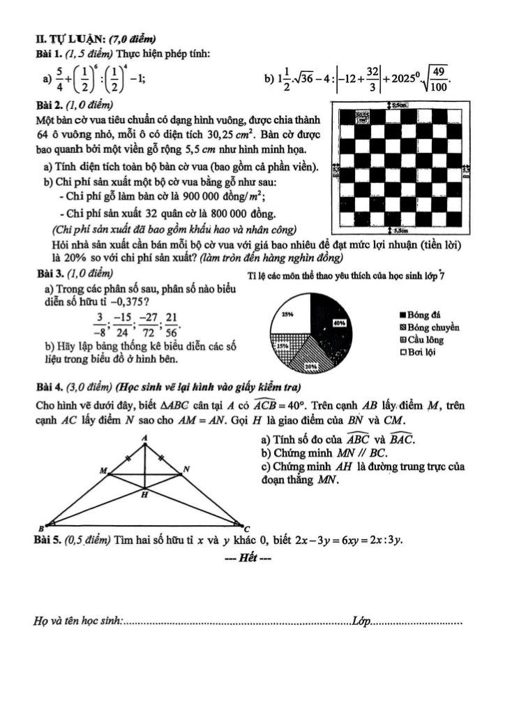 Toán học luôn là một môn học quan trọng, giúp học sinh phát triển tư duy logic và kỹ năng giải quyết vấn đề. Để hỗ trợ các bạn học sinh và giáo viên trong việc học tập và giảng dạy, bài viết này sẽ cung cấp lời giải chi tiết và đáp án chính xác cho chủ đề đề cuối kì 1 toán 7 năm 2025 – 2026 trường thcs tây sơn – đà nẵng, giúp bạn hiểu sâu và tự tin hơn khi làm bài tập.