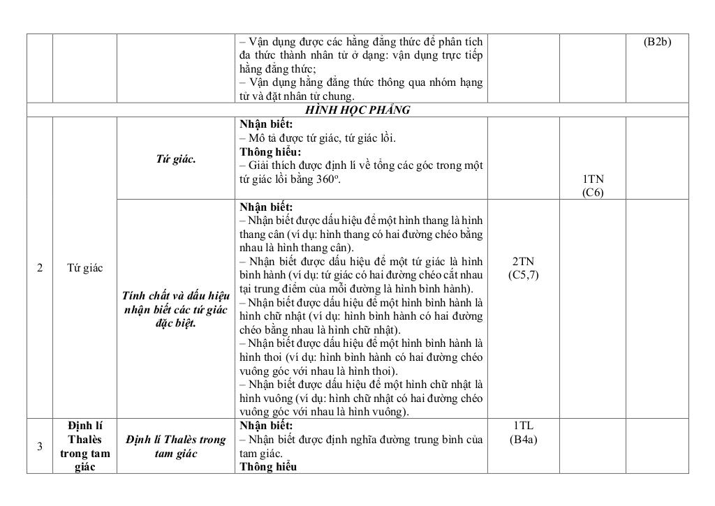 Ma trận Đề cuối kì 1 Toán 8 năm 2025 – 2026 trường THCS Phương Đông – Đà Nẵng: