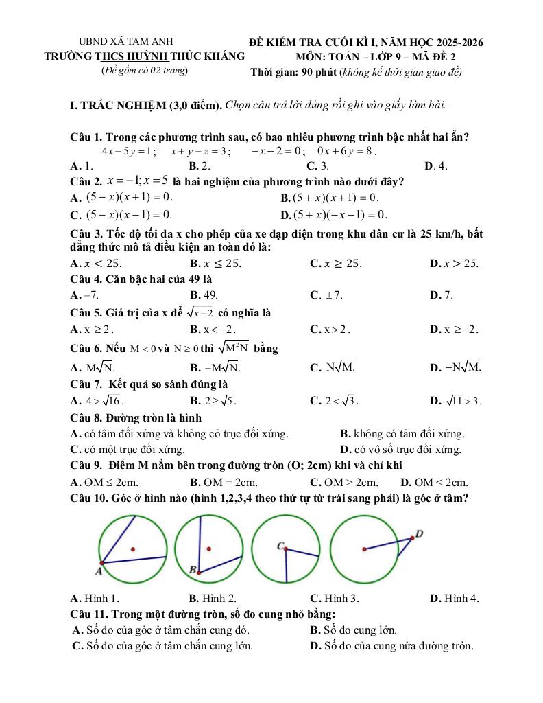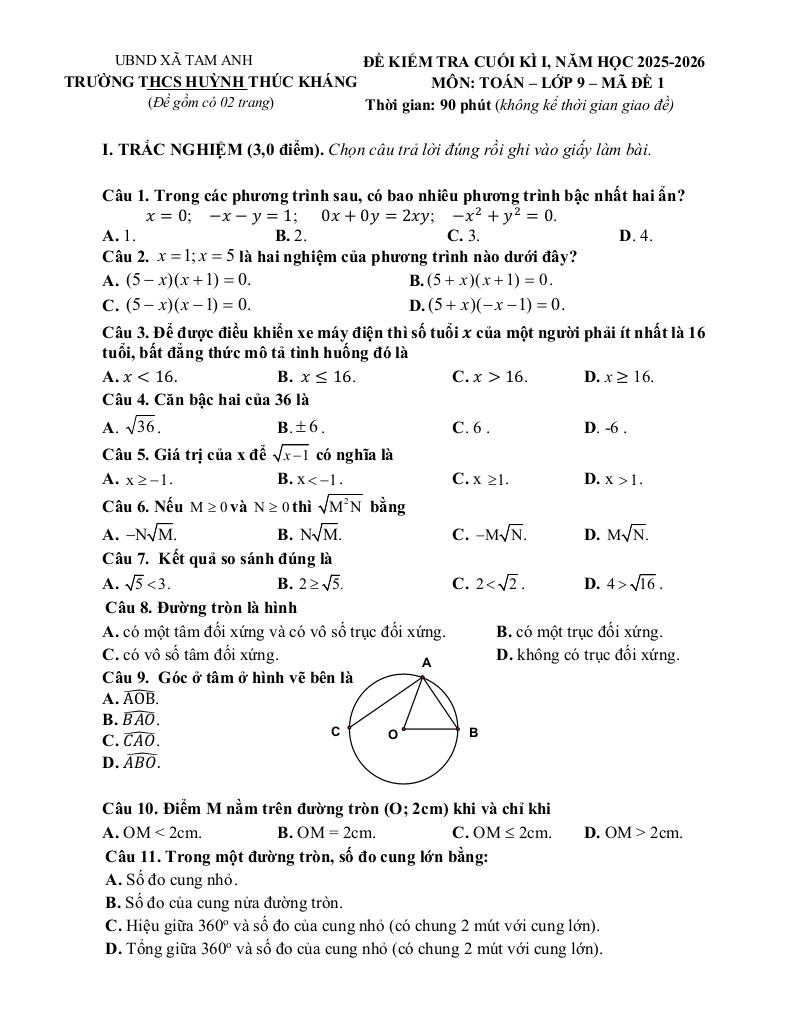 Toán học luôn là một môn học quan trọng, giúp học sinh phát triển tư duy logic và kỹ năng giải quyết vấn đề. Để hỗ trợ các bạn học sinh và giáo viên trong việc học tập và giảng dạy, bài viết này sẽ cung cấp lời giải chi tiết và đáp án chính xác cho chủ đề đề cuối kì 1 toán 9 năm 2025 – 2026 trường thcs huỳnh thúc kháng – đà nẵng, giúp bạn hiểu sâu và tự tin hơn khi làm bài tập.