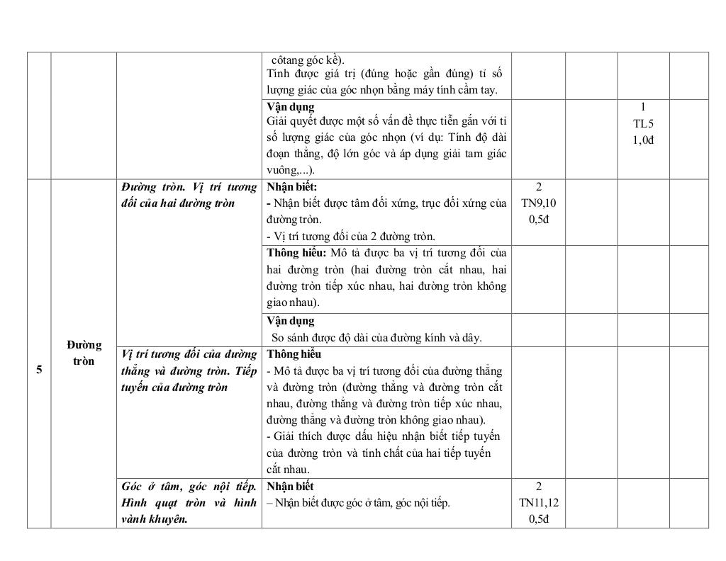 5 Đường tròn (11 tiết).