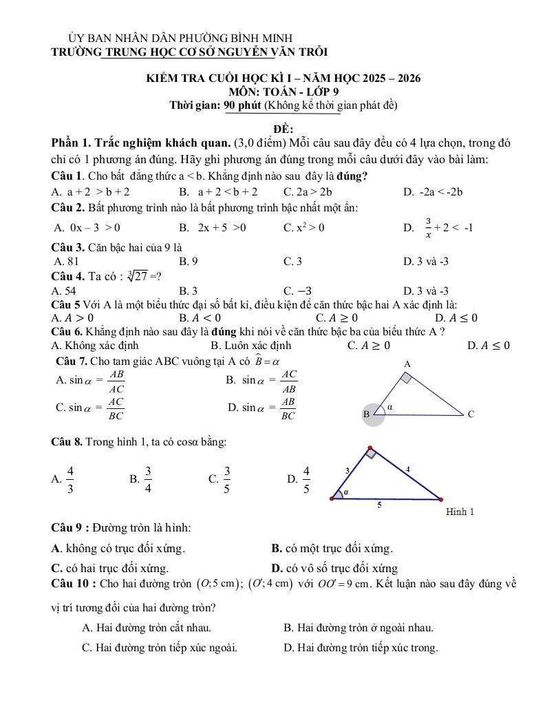 Giải Toán đề cuối kì 1 toán 9 năm 2025 – 2026 trường thcs nguyễn văn trỗi – tây ninh với Đáp Án Mới Nhất