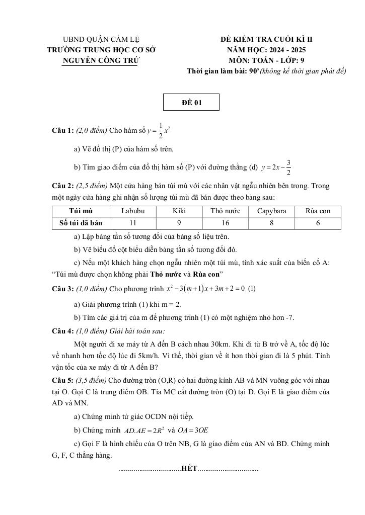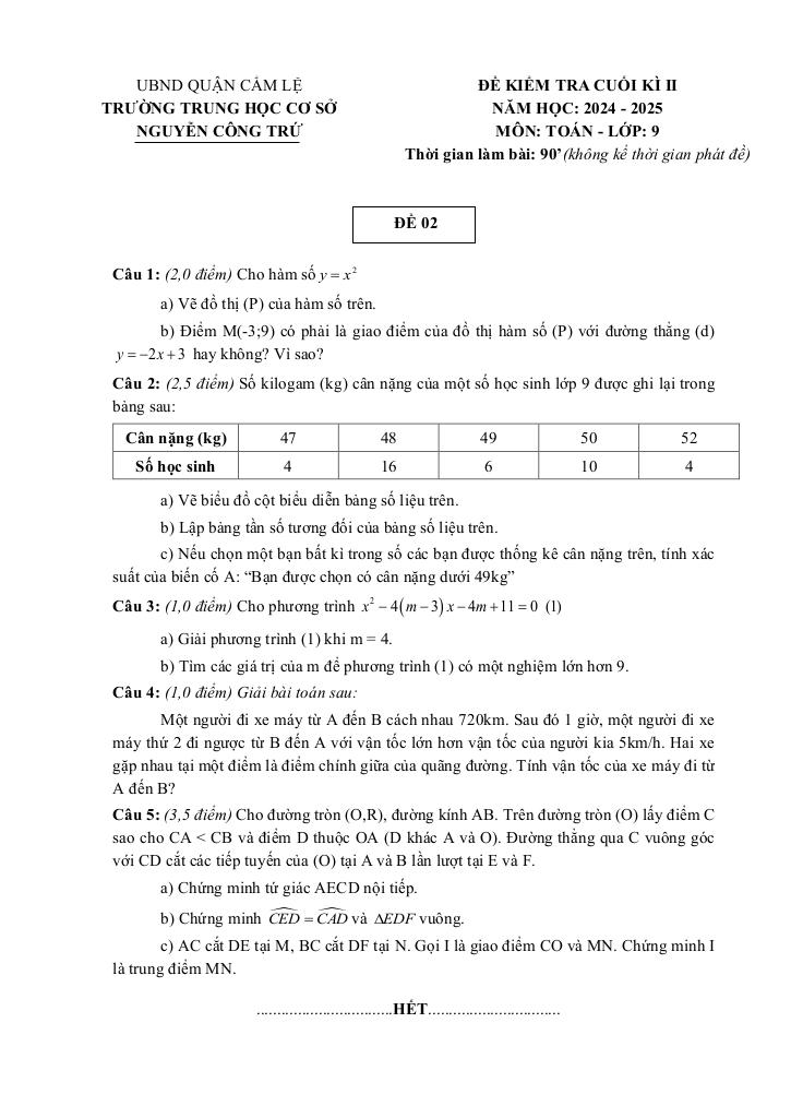 đề cuối kì 2 toán 9 năm 2024 – 2025 trường thcs nguyễn công trứ – đà nẵng đặc sắc thuộc chuyên mục