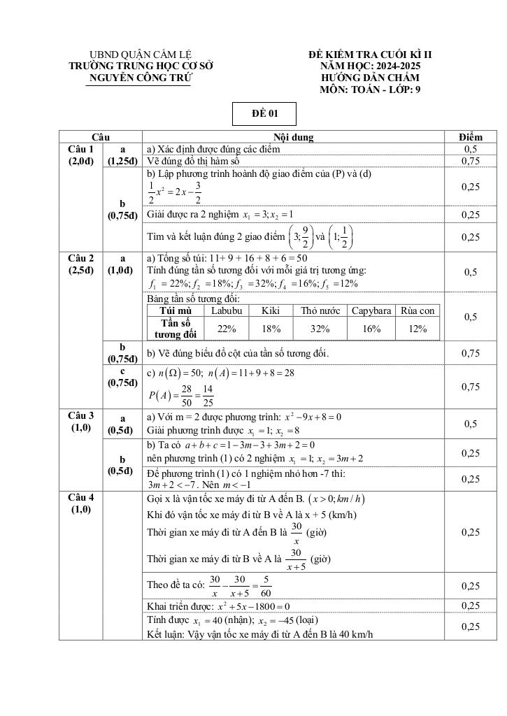 Giải Toán đề cuối kì 2 toán 9 năm 2024 – 2025 trường thcs nguyễn công trứ – đà nẵng với Đáp Án Mới Nhất