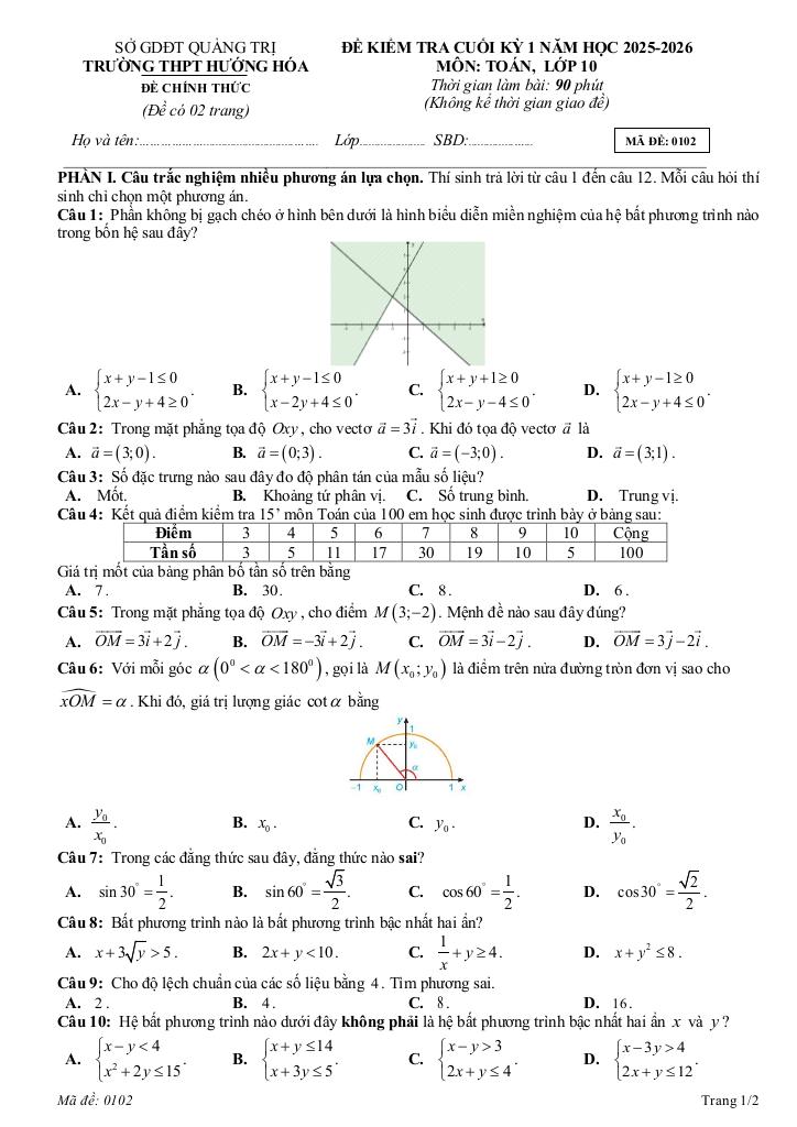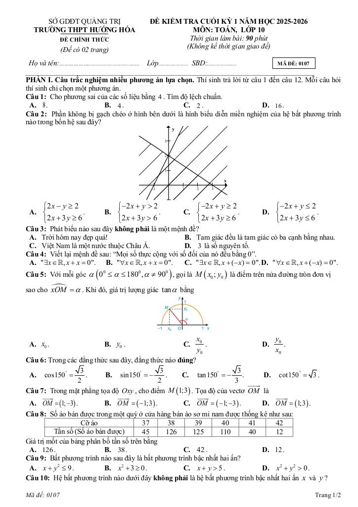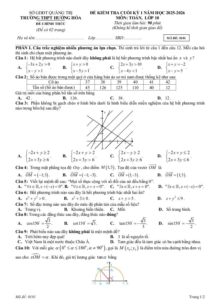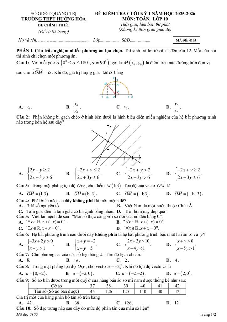 Toán học luôn là một môn học quan trọng, giúp học sinh phát triển tư duy logic và kỹ năng giải quyết vấn đề. Để hỗ trợ các bạn học sinh và giáo viên trong việc học tập và giảng dạy, bài viết này sẽ cung cấp lời giải chi tiết và đáp án chính xác cho chủ đề đề cuối kỳ 1 toán 10 năm 2025 – 2026 trường thpt hướng hóa – quảng trị, giúp bạn hiểu sâu và tự tin hơn khi làm bài tập.