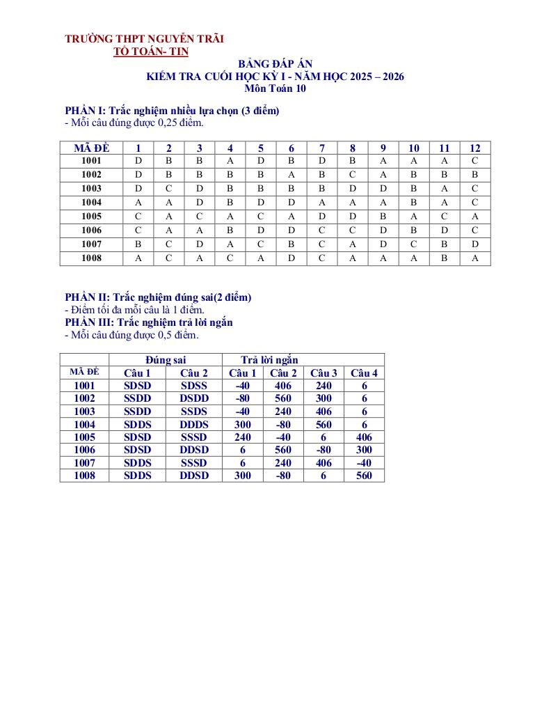 Giải Toán đề cuối kỳ 1 toán 10 năm 2025 – 2026 trường thpt nguyễn trãi – đà nẵng với Đáp Án Mới Nhất
