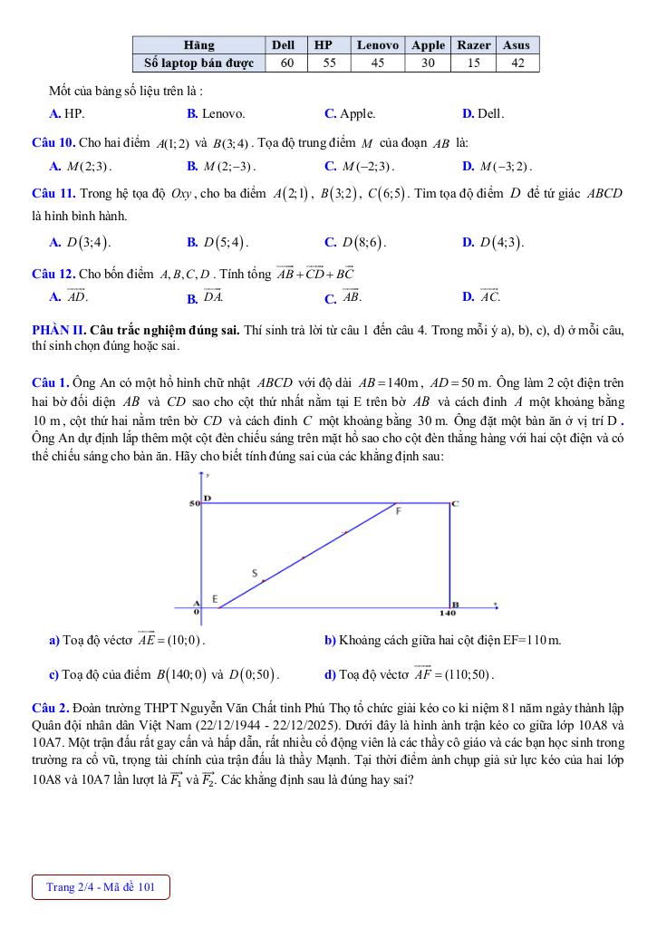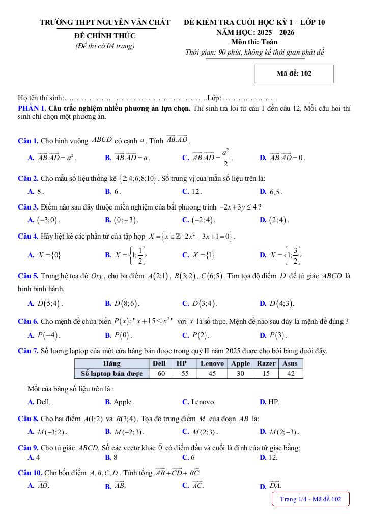 Toán học luôn là một môn học quan trọng, giúp học sinh phát triển tư duy logic và kỹ năng giải quyết vấn đề. Để hỗ trợ các bạn học sinh và giáo viên trong việc học tập và giảng dạy, bài viết này sẽ cung cấp lời giải chi tiết và đáp án chính xác cho chủ đề đề cuối kỳ 1 toán 10 năm 2025 – 2026 trường thpt nguyễn văn chất – phú thọ, giúp bạn hiểu sâu và tự tin hơn khi làm bài tập.