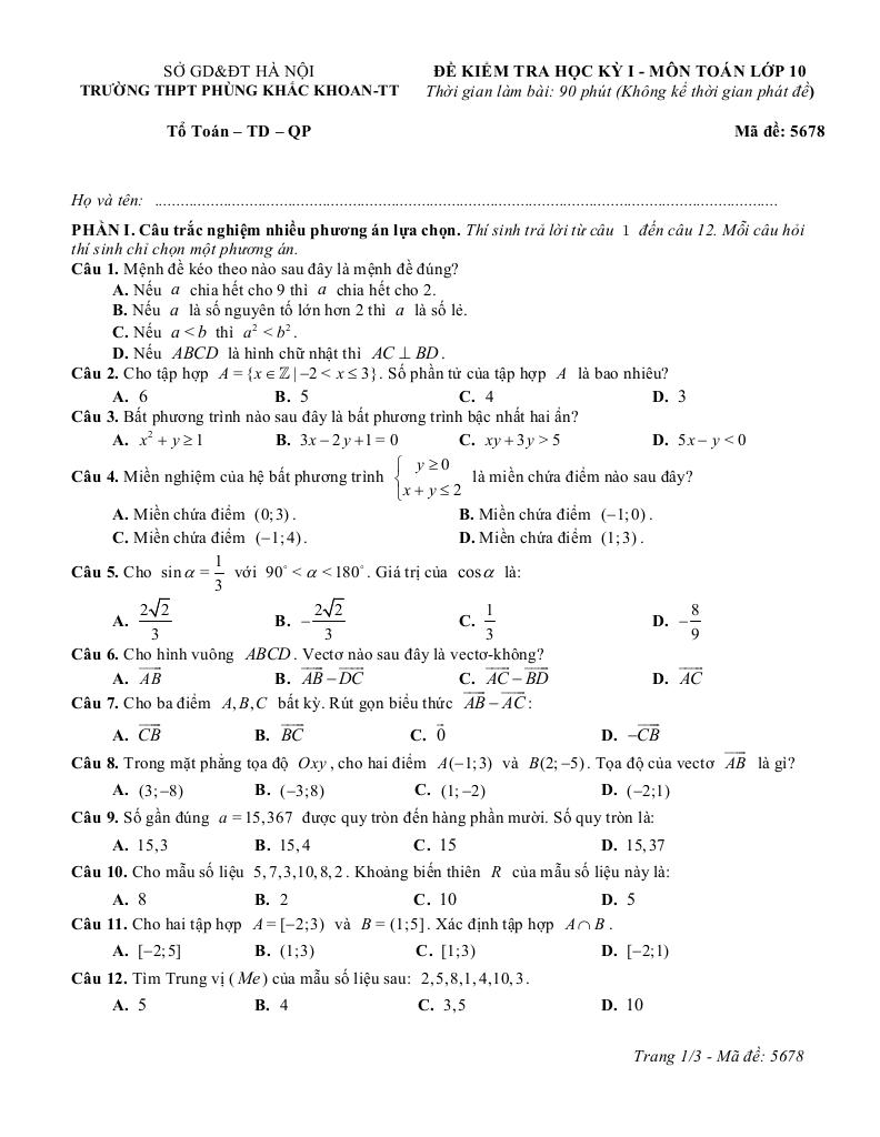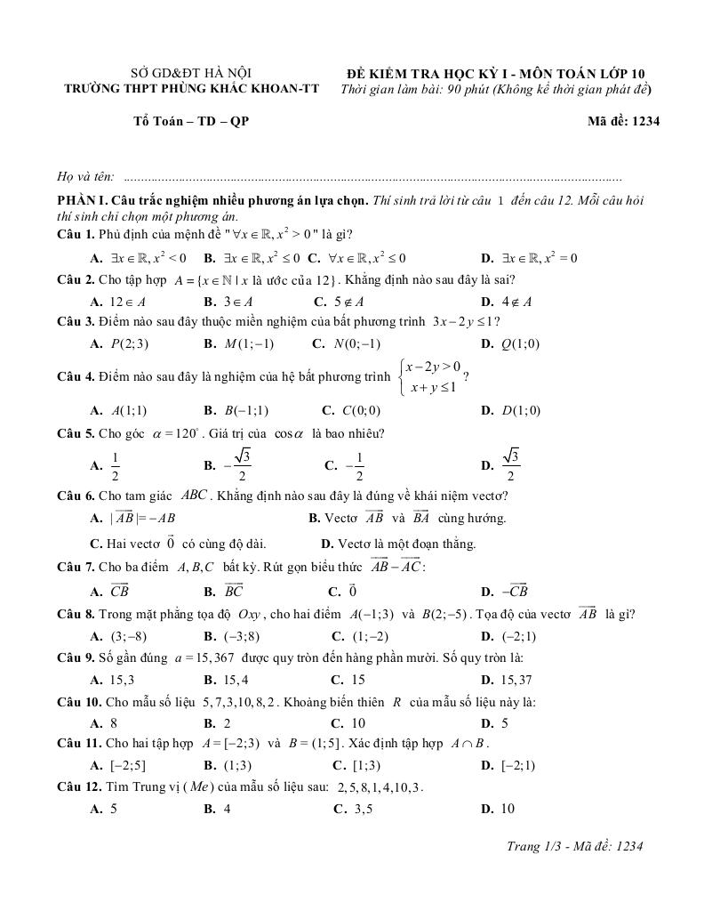 Toán học luôn là một môn học quan trọng, giúp học sinh phát triển tư duy logic và kỹ năng giải quyết vấn đề. Để hỗ trợ các bạn học sinh và giáo viên trong việc học tập và giảng dạy, bài viết này sẽ cung cấp lời giải chi tiết và đáp án chính xác cho chủ đề đề cuối kỳ 1 toán 10 năm 2025 – 2026 trường thpt phùng khắc khoan – hà nội, giúp bạn hiểu sâu và tự tin hơn khi làm bài tập.