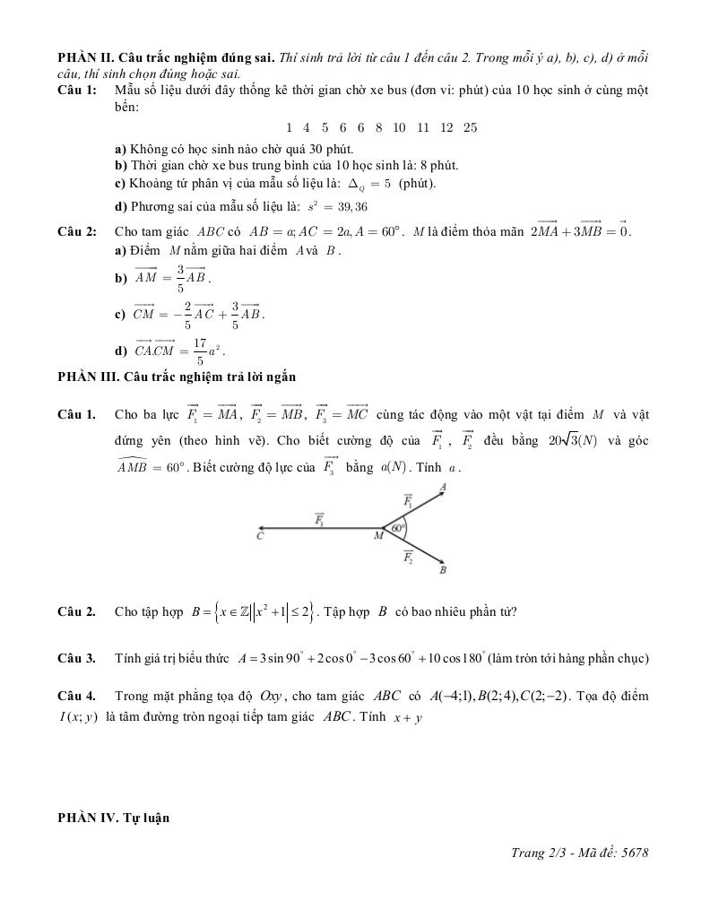 Giải Toán đề cuối kỳ 1 toán 10 năm 2025 – 2026 trường thpt phùng khắc khoan – hà nội với Đáp Án Mới Nhất