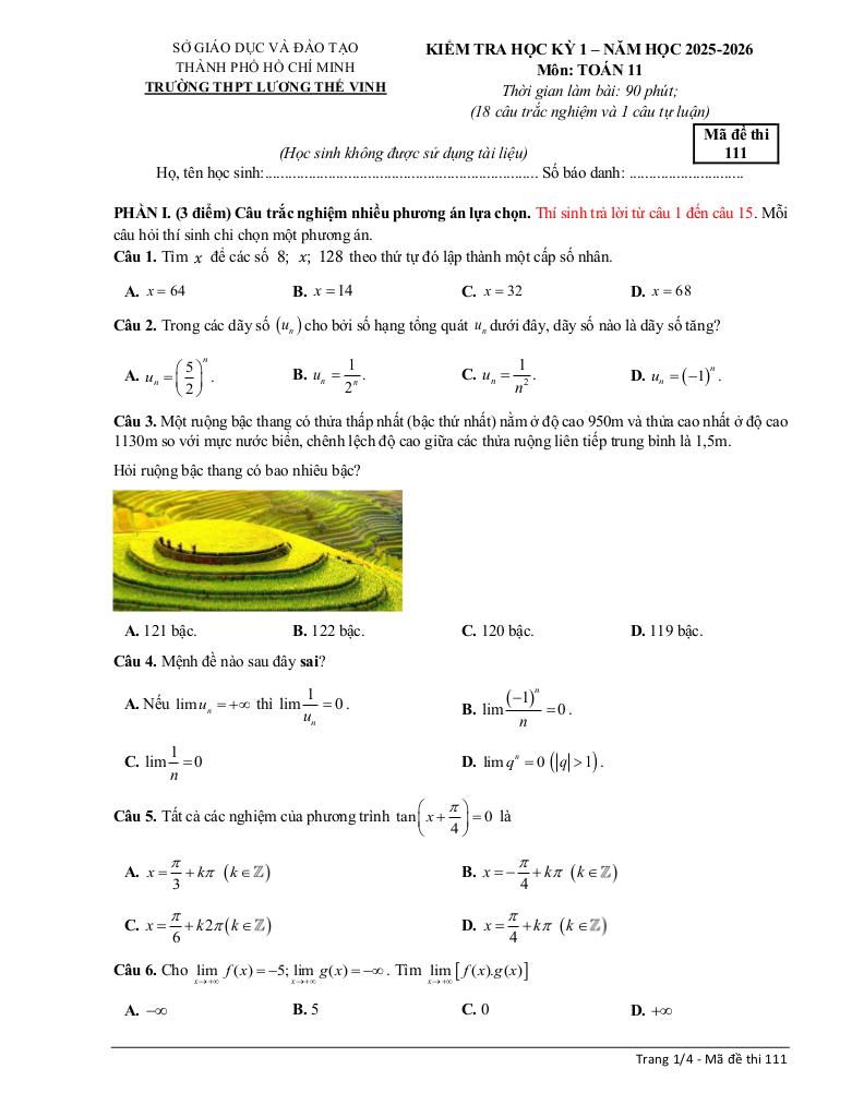 Trích dẫn Đề cuối kỳ 1 Toán 11 năm 2025 – 2026 trường THPT Lương Thế Vinh – TP HCM:
