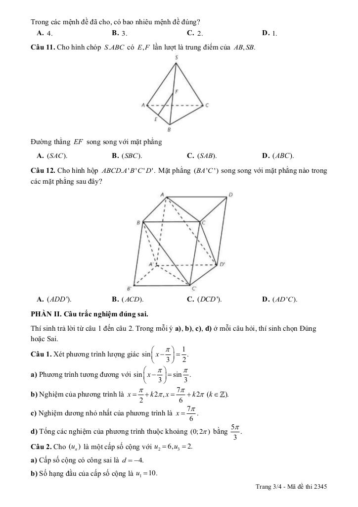 Giải Toán đề cuối kỳ 1 toán 11 năm 2025 – 2026 trường thpt phùng khắc khoan – hà nội với Đáp Án Mới Nhất