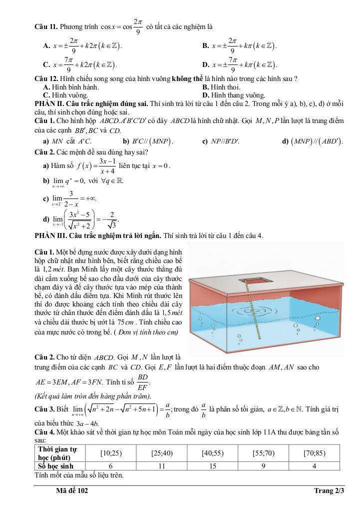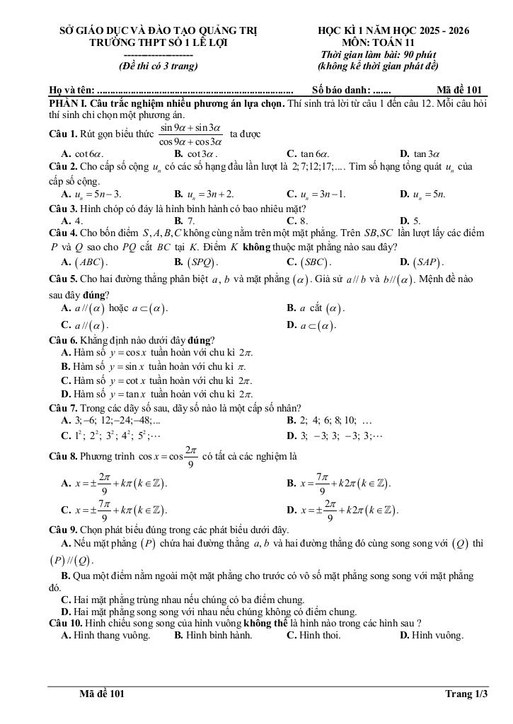 Toán học luôn là một môn học quan trọng, giúp học sinh phát triển tư duy logic và kỹ năng giải quyết vấn đề. Để hỗ trợ các bạn học sinh và giáo viên trong việc học tập và giảng dạy, bài viết này sẽ cung cấp lời giải chi tiết và đáp án chính xác cho chủ đề đề cuối kỳ 1 toán 11 năm 2025 – 2026 trường thpt số 1 lê lợi – quảng trị, giúp bạn hiểu sâu và tự tin hơn khi làm bài tập.