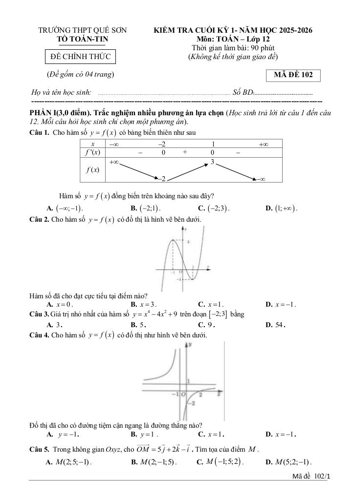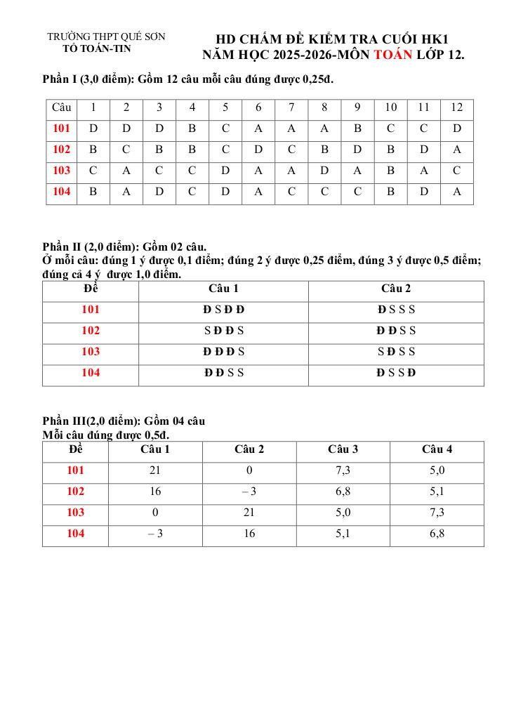 Giải Toán đề cuối kỳ 1 toán 12 năm 2025 – 2026 trường thpt quế sơn – đà nẵng với Đáp Án Mới Nhất