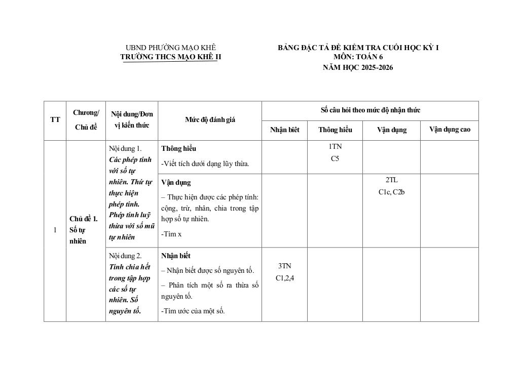 đề cuối kỳ 1 toán 6 năm 2025 – 2026 trường thcs mạo khê 2 – quảng ninh là một trong những phần kiến thức quan trọng trong chương trình toán học, thường xuất hiện trong các bài kiểm tra và kỳ thi lớn. Việc nắm vững phần này không chỉ giúp bạn đạt điểm cao mà còn tạo nền tảng vững chắc để học các nội dung nâng cao hơn.