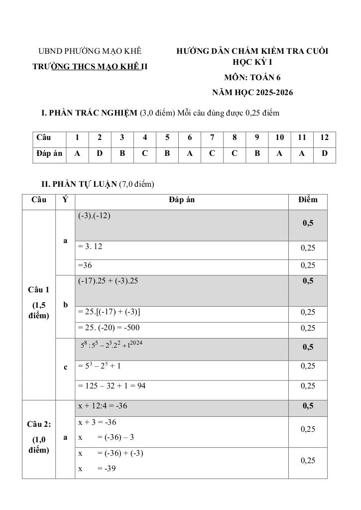 Toán học luôn là một môn học quan trọng, giúp học sinh phát triển tư duy logic và kỹ năng giải quyết vấn đề. Để hỗ trợ các bạn học sinh và giáo viên trong việc học tập và giảng dạy, bài viết này sẽ cung cấp lời giải chi tiết và đáp án chính xác cho chủ đề đề cuối kỳ 1 toán 6 năm 2025 – 2026 trường thcs mạo khê 2 – quảng ninh, giúp bạn hiểu sâu và tự tin hơn khi làm bài tập.