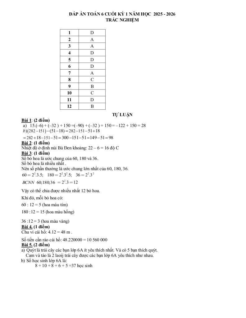 Toán học luôn là một môn học quan trọng, giúp học sinh phát triển tư duy logic và kỹ năng giải quyết vấn đề. Để hỗ trợ các bạn học sinh và giáo viên trong việc học tập và giảng dạy, bài viết này sẽ cung cấp lời giải chi tiết và đáp án chính xác cho chủ đề đề cuối kỳ 1 toán 6 năm 2025 – 2026 trường thpt lương thế vinh – tp hcm, giúp bạn hiểu sâu và tự tin hơn khi làm bài tập.