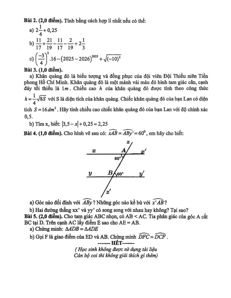 Toán học luôn là một môn học quan trọng, giúp học sinh phát triển tư duy logic và kỹ năng giải quyết vấn đề. Để hỗ trợ các bạn học sinh và giáo viên trong việc học tập và giảng dạy, bài viết này sẽ cung cấp lời giải chi tiết và đáp án chính xác cho chủ đề đề cuối kỳ 1 toán 7 năm 2025 – 2026 trường thcs lê lợi – đà nẵng, giúp bạn hiểu sâu và tự tin hơn khi làm bài tập.