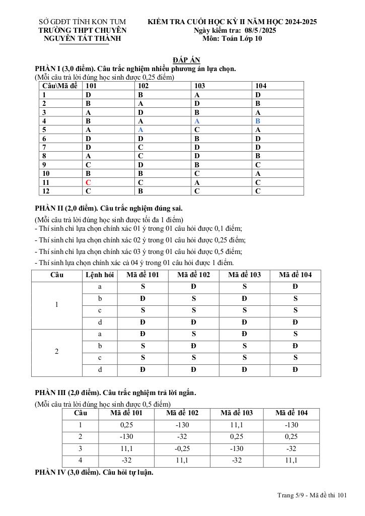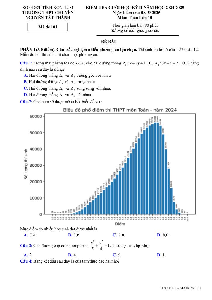 Giải Toán đề cuối kỳ 2 toán 10 năm 2024 – 2025 trường chuyên nguyễn tất thành – kon tum với Đáp Án Mới Nhất