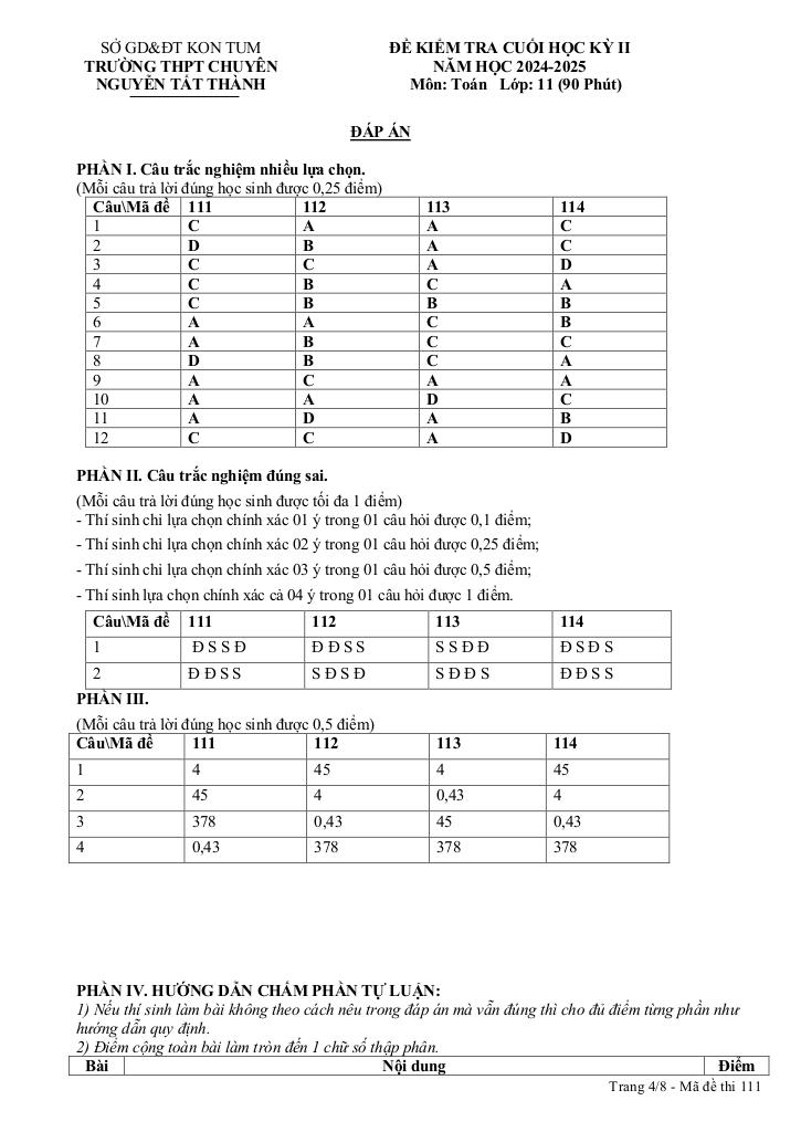 Giải Toán đề cuối kỳ 2 toán 11 năm 2024 – 2025 trường chuyên nguyễn tất thành – kon tum với Đáp Án Mới Nhất
