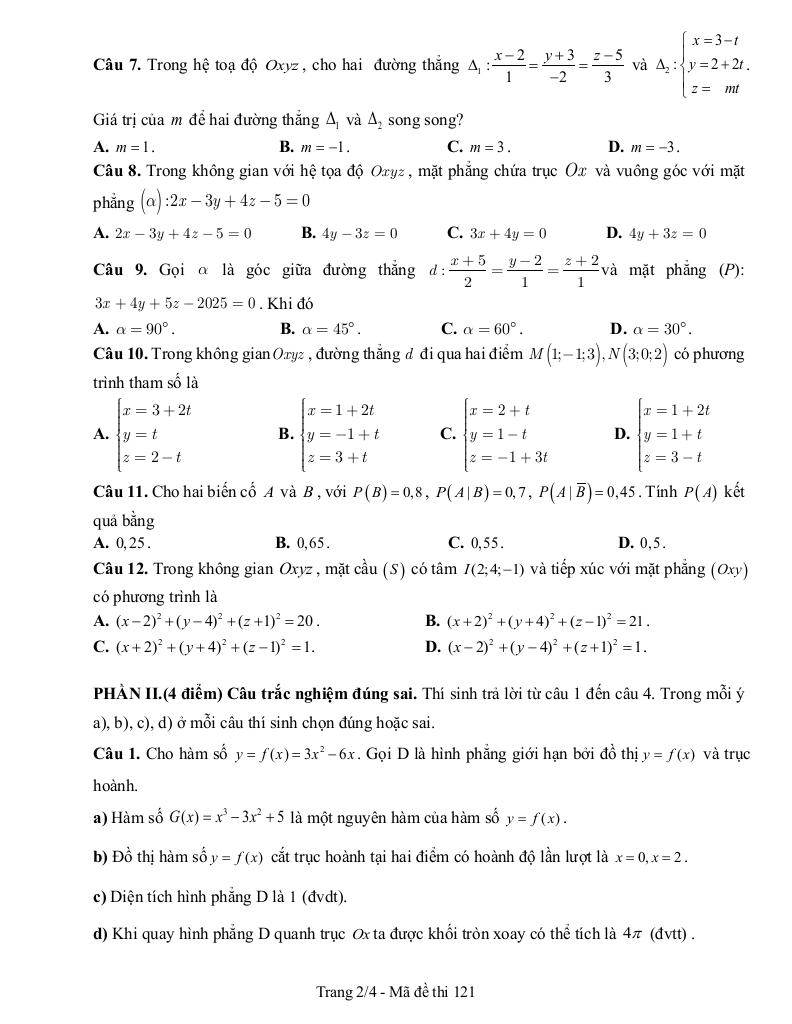 >> Xem thêm đáp án chi tiết về: đề cuối kỳ 2 toán 12 năm 2024 – 2025 trường thpt ngô quyền – tp hcm.