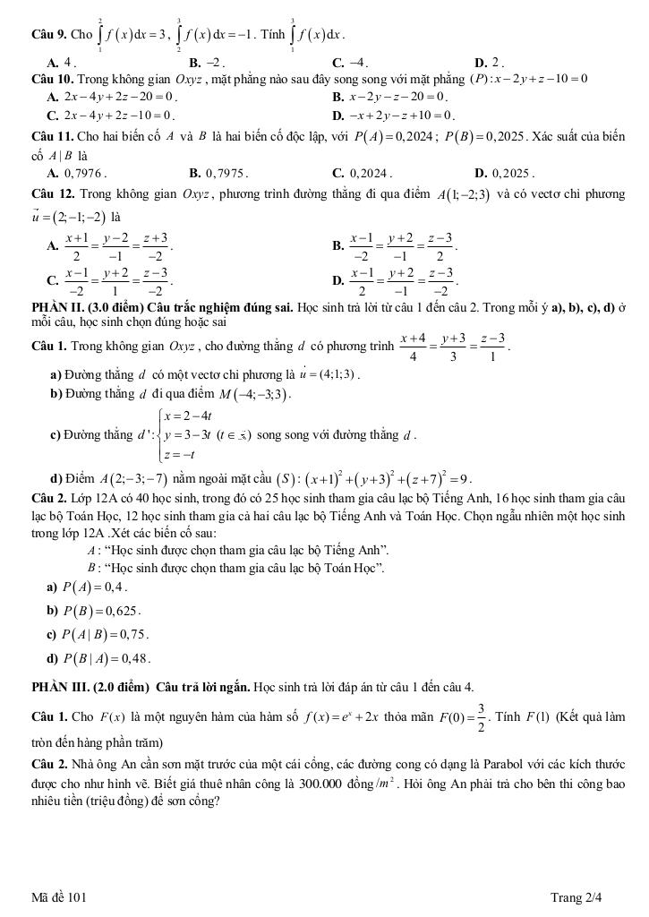 Toán học luôn là một môn học quan trọng, giúp học sinh phát triển tư duy logic và kỹ năng giải quyết vấn đề. Để hỗ trợ các bạn học sinh và giáo viên trong việc học tập và giảng dạy, bài viết này sẽ cung cấp lời giải chi tiết và đáp án chính xác cho chủ đề đề cuối kỳ 2 toán 12 năm 2024 – 2025 trường thpt ngũ hành sơn – đà nẵng, giúp bạn hiểu sâu và tự tin hơn khi làm bài tập.