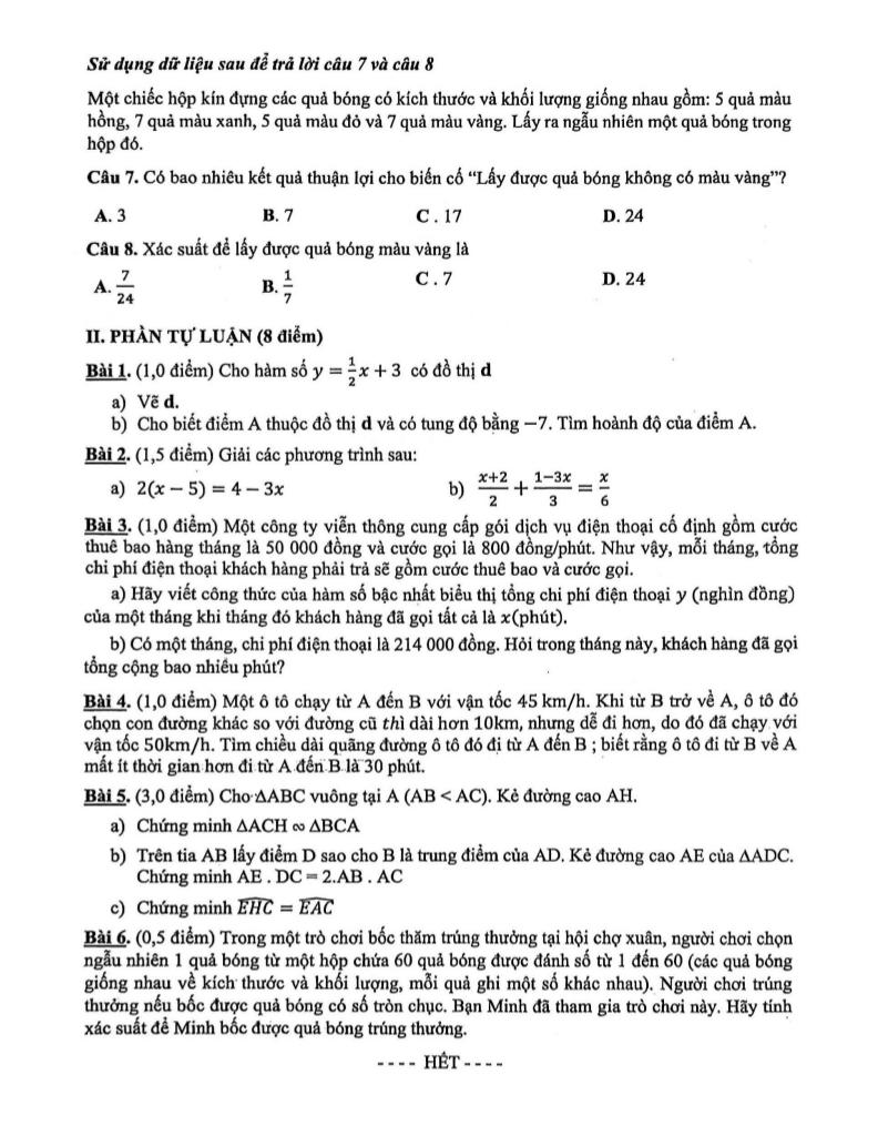 Giải Toán đề cuối kỳ 2 toán 8 năm 2025 – 2026 trường thcs hoa lư – tp hcm với Đáp Án Mới Nhất