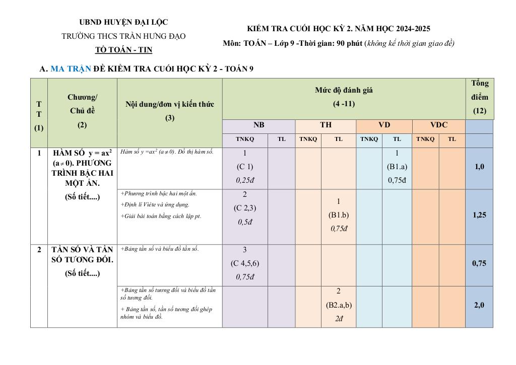 1. Tổng Quan về Chủ Đề đề cuối kỳ 2 toán 9 năm 2024 – 2025 trường thcs trần hưng đạo – quảng nam