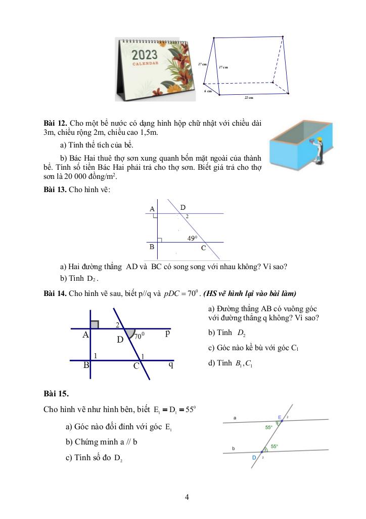 – Bài toán tính số đo góc, chứng minh các cặp góc bằng nhau.