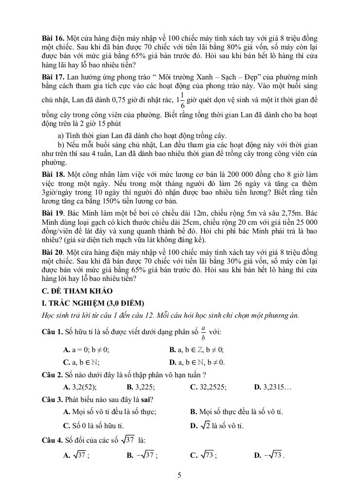 – Giải quyết được một số vấn đề thực tiễn gắn với các phép tính về số hữu tỉ.