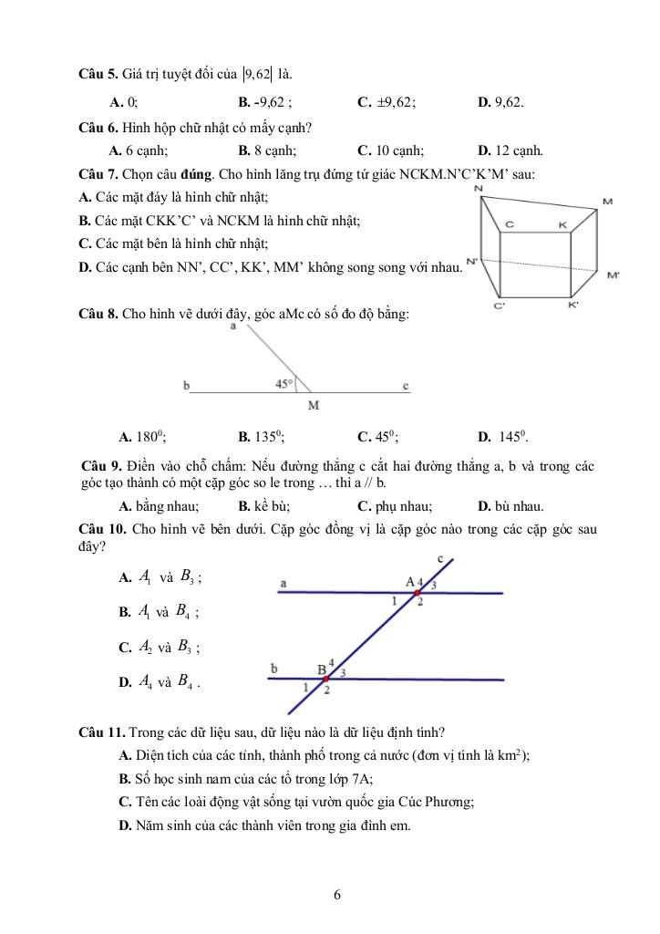 – Nhận biết được các góc ở vị trí đặc biệt (hai góc kề bù, hai góc đối đỉnh, hai góc đồng vị, hai góc so le trong).