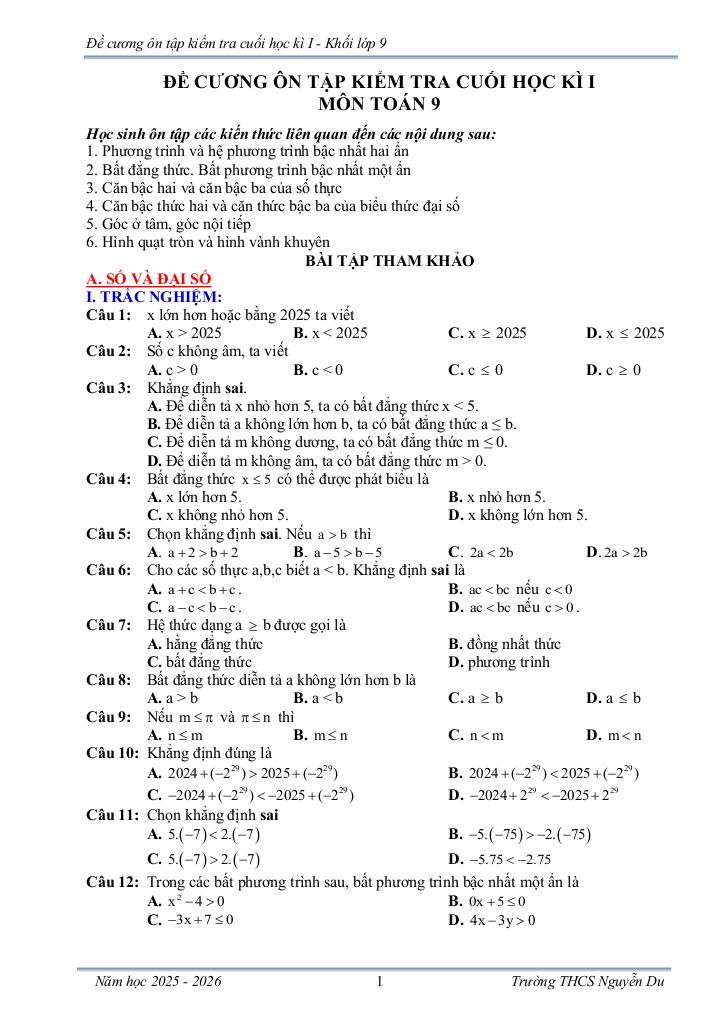 Toán học luôn là một môn học quan trọng, giúp học sinh phát triển tư duy logic và kỹ năng giải quyết vấn đề. Để hỗ trợ các bạn học sinh và giáo viên trong việc học tập và giảng dạy, bài viết này sẽ cung cấp lời giải chi tiết và đáp án chính xác cho chủ đề đề cương cuối học kì 1 toán 9 năm 2025 – 2026 trường thcs nguyễn du – lâm đồng, giúp bạn hiểu sâu và tự tin hơn khi làm bài tập.