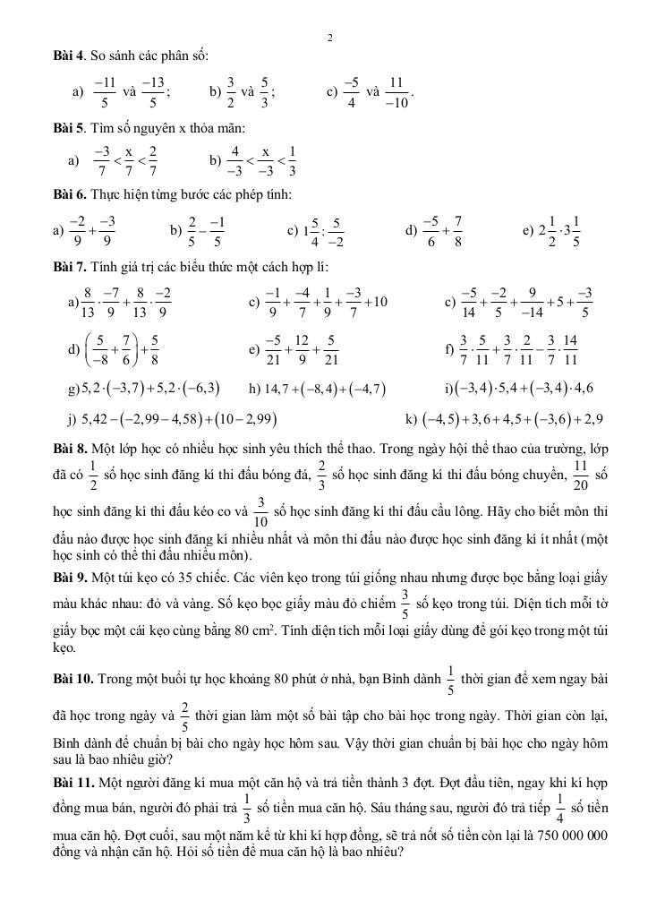 – Tính chất cơ bản của phân số. So sánh phân số.