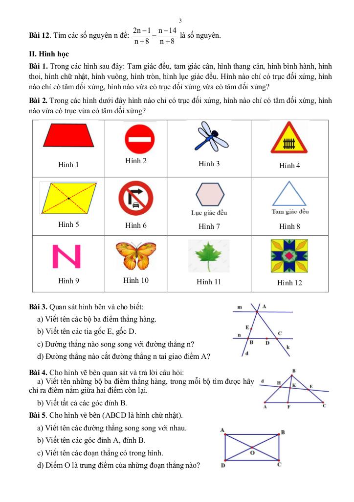 – Hình có trục đối xứng. Hình có tâm đối xứng.