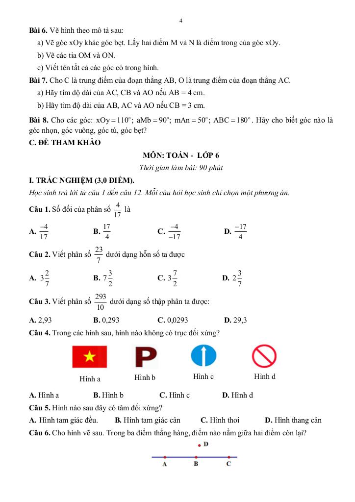 – Góc. Số đo góc. Các góc đặc biệt.