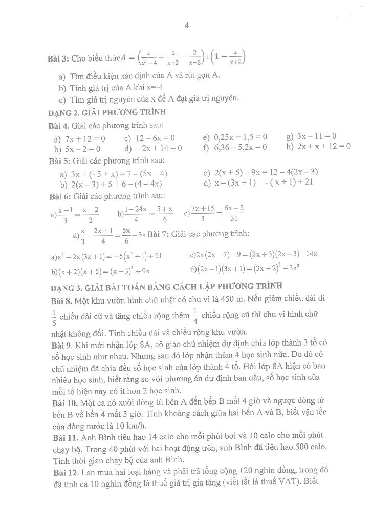 – Giải phương trình, giải bài toán bằng cách lập phương trình.